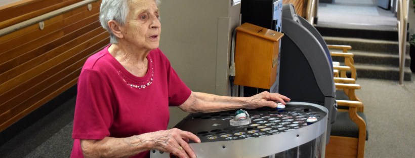 Kay Robertson stands off to the side of the common sitting area at Beverly Place lodge. Three tables of men and women leaning over their bingo boards are laid out in front of her. They listen carefully as she calls out the numbers and letters, never stuttering or muttering as she draws each new ball. … Continue reading Kay’s Volunteer Award