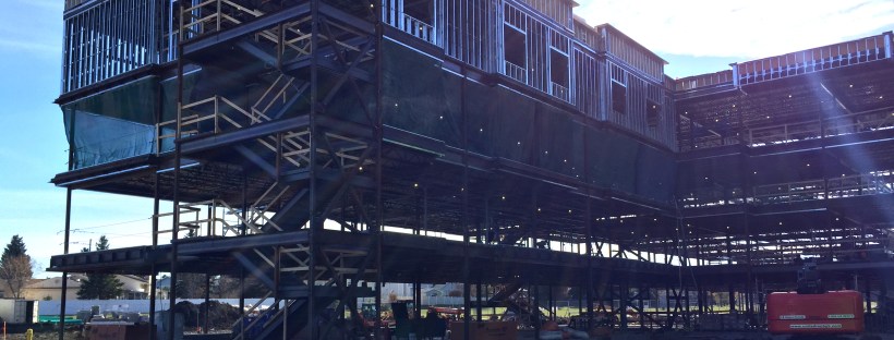 Doug Kitlar stands on the main floor of the Sakaw Terrace construction site, looking out to the Bobcat skid flattening the wet soil where the first asphalt for the building’s main parking lot will be laid. He explains that this first layer may not last through the end of the construction but is being installed … Continue reading Sakaw Terrace Update for October 2017